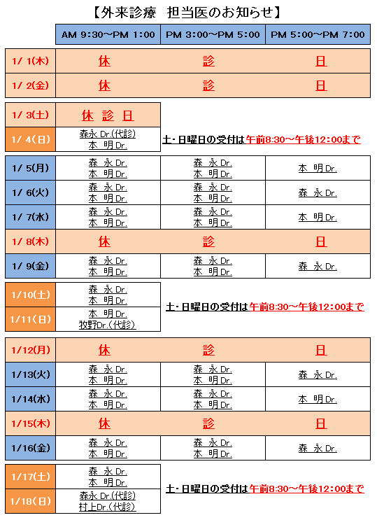 外来診療担当医師のお知らせ