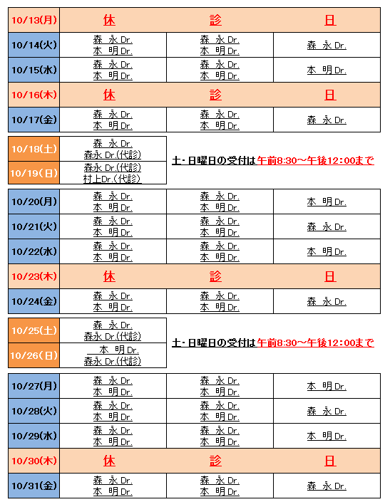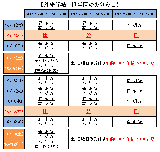 外来診療担当医師のお知らせ